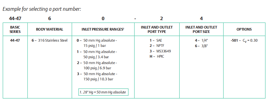 44-4700系列TESCOM工业背压气体调压阀选型参考